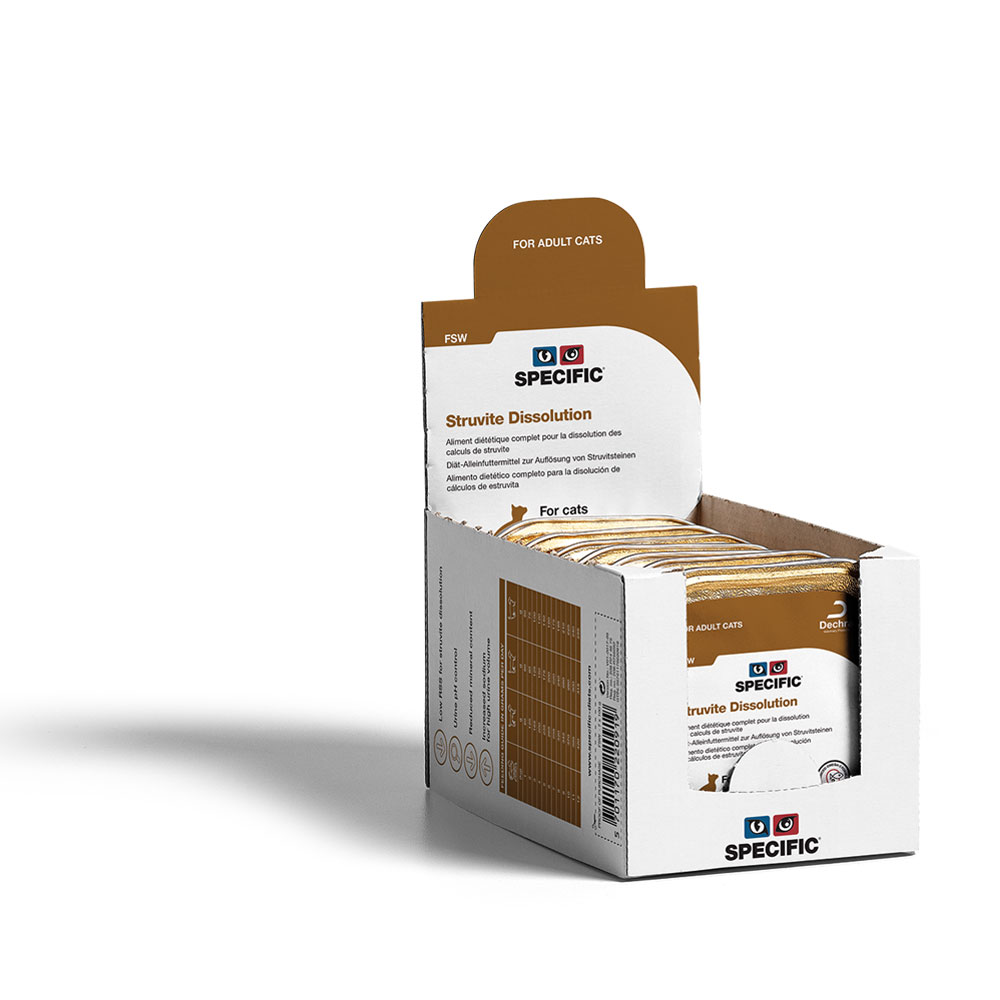 - Dissoluzione e riduzione della recidiva dell’urolitiasi da struvite nei gatti sterilizzati e/o in sovrappeso